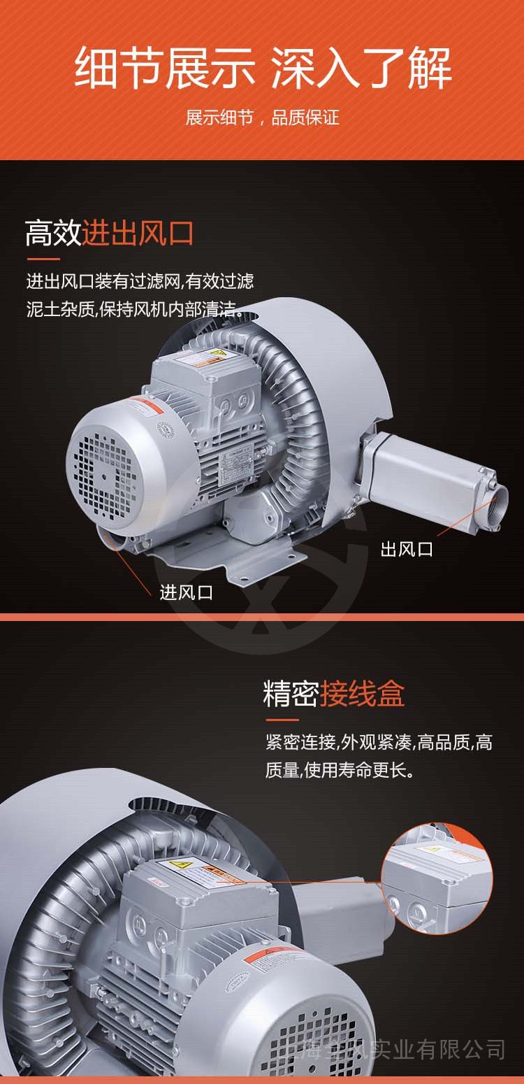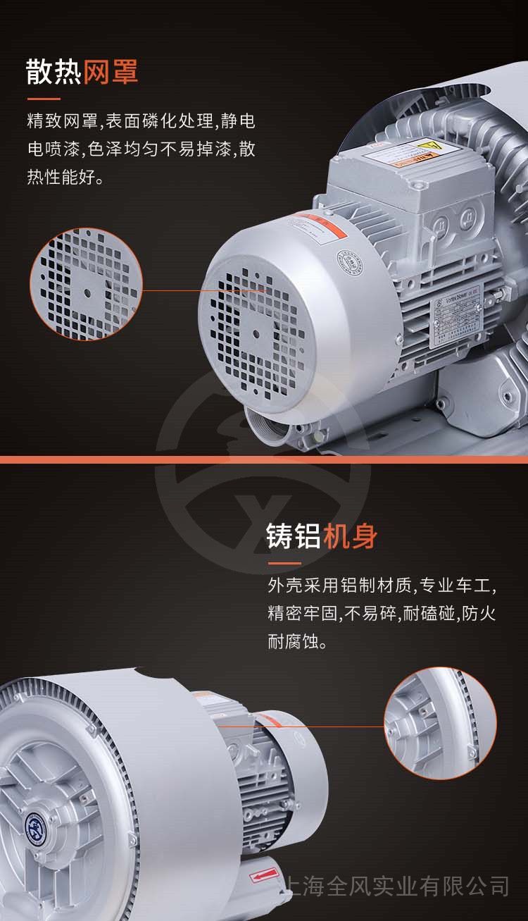 1、具有吹吸双功能,一机两用,可以用吸风,也可以用吹风;2、少油或无油运转,输出的空气是干净的;3、相对于离心风机和中压风机来说,其压力高很多,往往是离心风机的十几倍以上;4、如果泵体是整体压铸,并且使用了防震安装脚座,那么它对安装基础的要求也是很低的,甚至可以不用固定脚座即可正常运转,非常的方便,也非常的节省安装费用和安装周期; 5、相对同类风机,其运转的噪音较低,就如YX推出超静音型旋涡风机:6、免维护使用;它的损耗件仅仅是两个轴承,在质保期之内,基本上不需要维护; 7、机械磨损非常微小,因为除了轴承之外,没其它的机械接触部分,所以,使用寿命当然也是非常的长,只要是处于正常的使用条件下,3~5年是完全没有问题的。