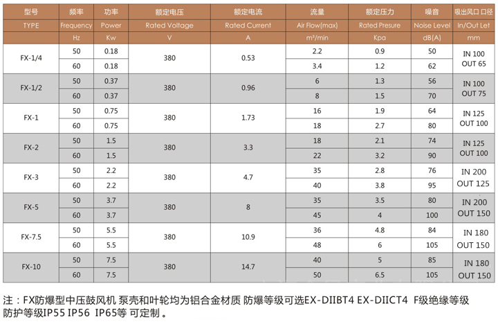 1、全风鼓风机CX型号如下: